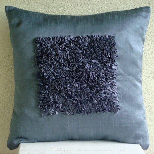 Vintage Blue Love - Decorative Throw Pillow Cover. This pillow cover on a dull blue color art silk dupioni fabric adorned romantically with matching ribbon hand embroidered in the center of the pillow cover. The back of the pillow is the same dull blue Silk Dupioni fabric with a flap covered zipper for clean look and easy removal. This pillow cover is available in Size 16x16 inches, 18x18 inches, 20x20 inches, 22x22 inches and 24x24 inches. Note: This Pillow Cover Design can be Customized in Other Sizes. Send me an email on urvi@thehomecentric.com with your request. Made In India under strict Quality & Environmental standards.